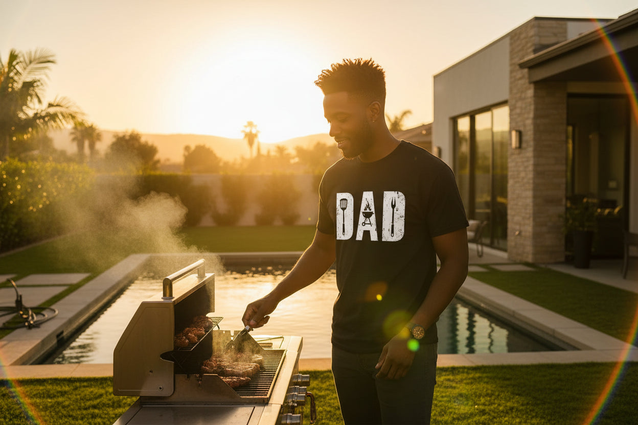 Dad of the Grill Graphic Shirt Perfect for the man who rules the backyard, this bold graphic shirt celebrates grilling season year-round. Featuring a witty "Dad of the Grill" design, it's an ideal gift for fathers who take their BBQ seriously or a fun way for grill masters to show their passion. Comfortable, durable, and conversation-starting, this shirt pairs effortlessly with jeans or shorts for casual outings, backyard gatherings, or weekend adventures. Whether he's a seasoned pitmaster or weekend warrior, this tee lets him wear his grilling pride with style.