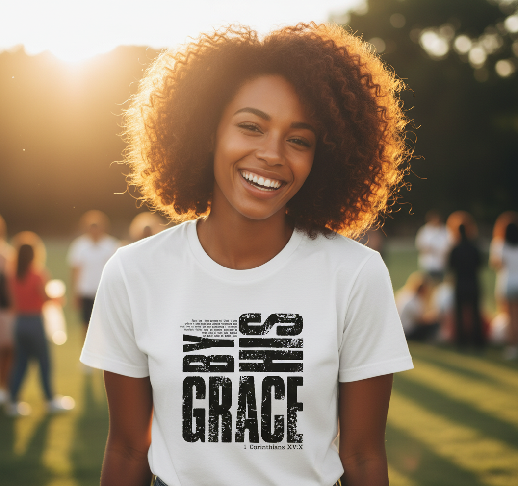 inspirational t-shirt The "By His Grace" graphic shirt combines comfort with a powerful message of faith. Made with soft, breathable fabric, it offers everyday wearability while inspiring strength and hope. This shirt serves as a gentle reminder of grace’s ability to carry us through life’s challenges, making it a meaningful addition to your wardrobe or a thoughtful gift for someone in need of encouragement.