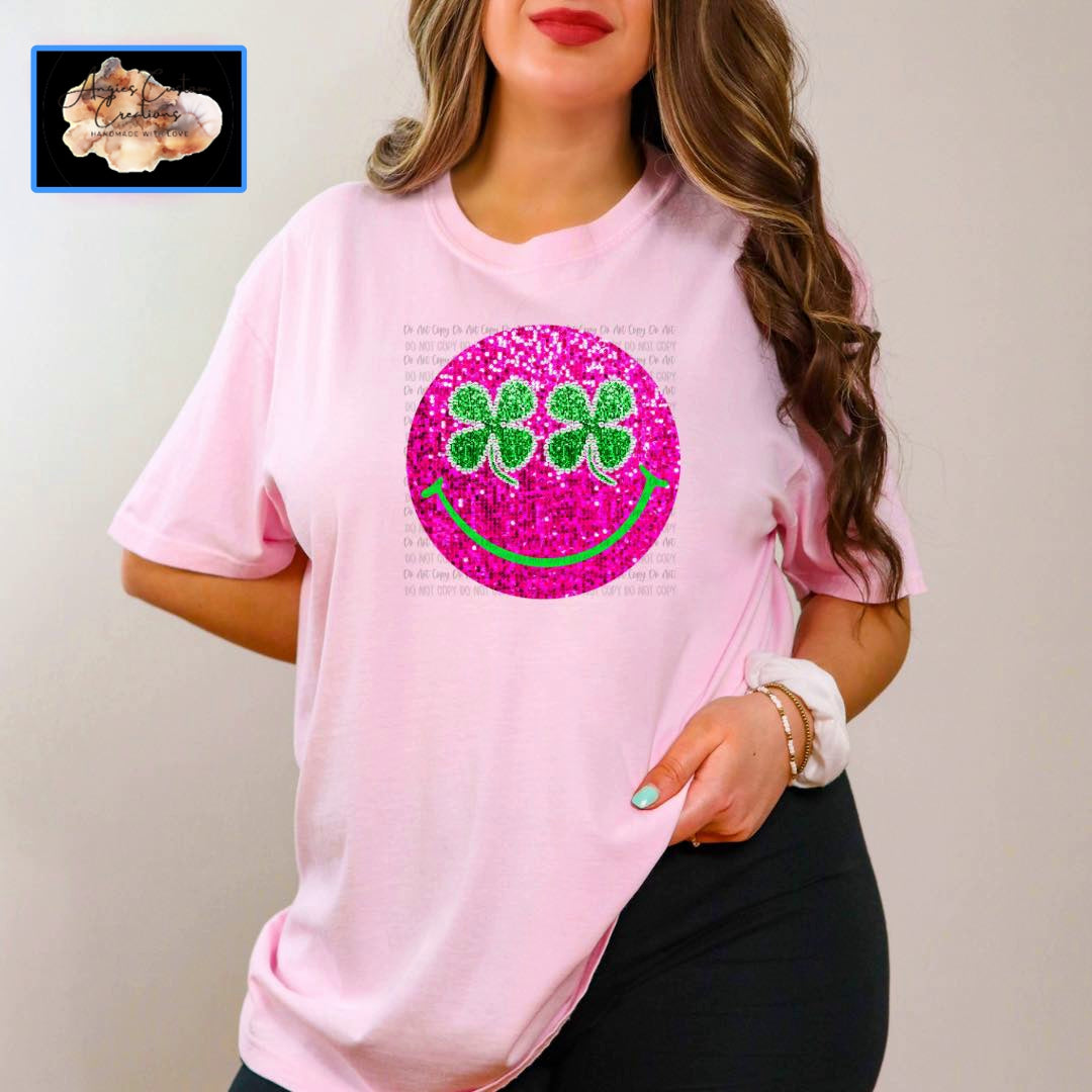 Get lucky with our smile-inducing Lucky Smiley Face screen print Tee-shirt! Perfect for spreading Irish cheer and making others smile.