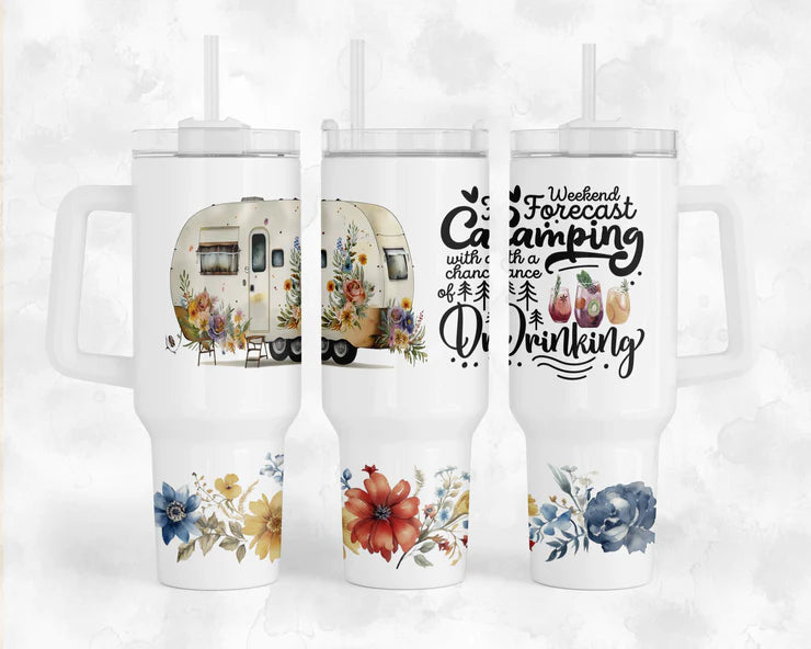 Get ready for some weekend camping fun, complete with a 40 oz drink Tumbler. Because, let's be real, drinking and camping go together like peas and carrots. (But please, only hand wash your items!). Design is uvdtf.